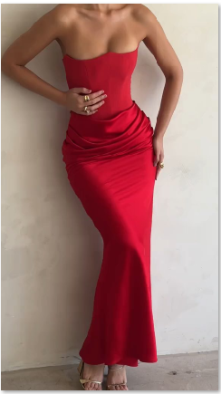 ✨ Strapless neckline – highlights shoulders & collarbone